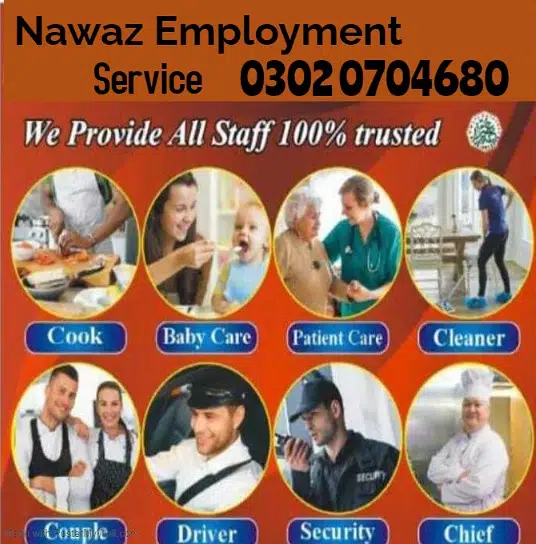 All kind Of Professional Relaibal Trained or Verified Domestic Staff or Office Staff or Patients Care Services at Home Staff 12/7 or 24/7 Male or Female Avalibale in All over Pakistan.