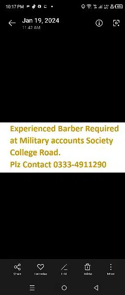 Full time experienced Barber required at Military Accounts society near Missile Chawk college road.
