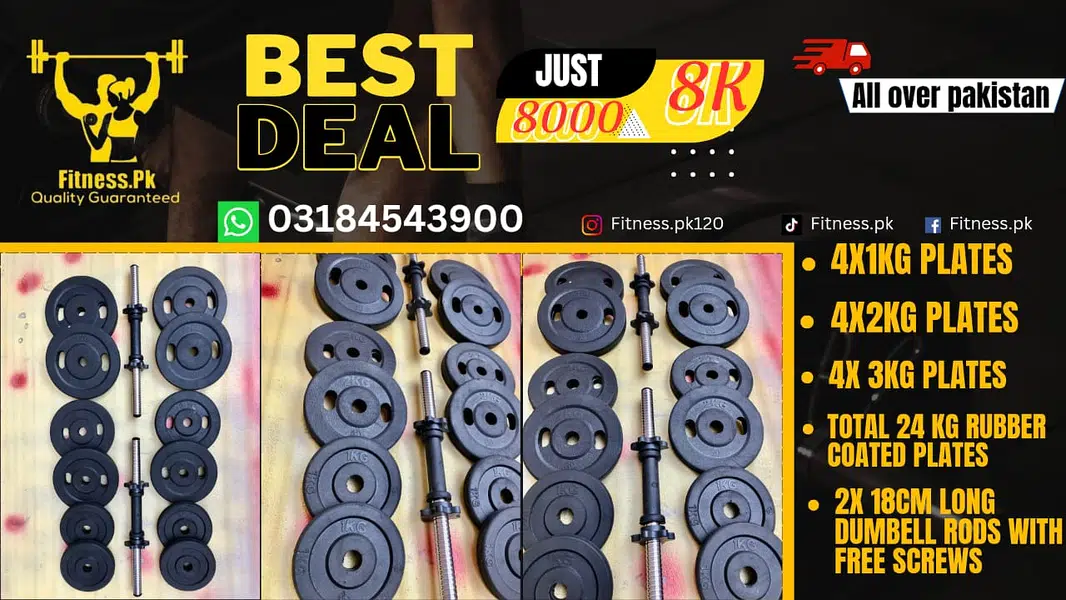 All other fitness accessories, dumbbells, rods, weight plates, benches are also available at very reasonable prices.