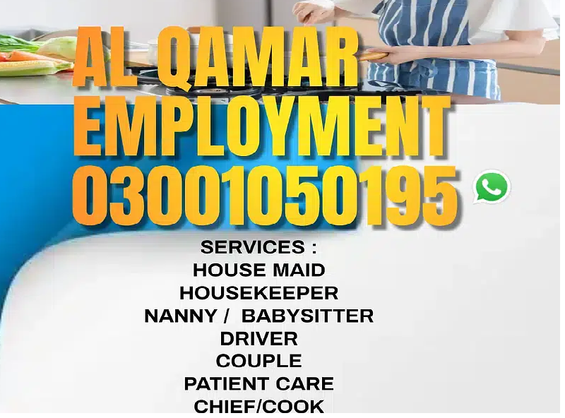 Housemaids, Housekeepers, Cooks, Drivers, Nannies, Babysitters, Patient Attendants, Elder Caregivers, Mom's Helpers, Kitchen Helpers, Butlers, Laundress, Gardner, Watchman, Couples and whatever you have required at home