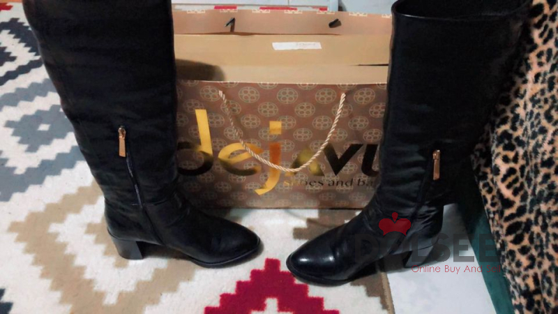 بوت اسود طويل من دي چافو اتلبس مره وحده سبب البيع ضيق علي رجلي