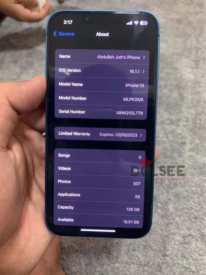 iPhone 13 128GB under Applecare WarrantyModel: iPhone 13Colour: BLUEStorage: 128GBWarranty: Till 2nd May 2023Carrier: Australian X/APrice is almost final.Location: Al Murar Deira Dubai