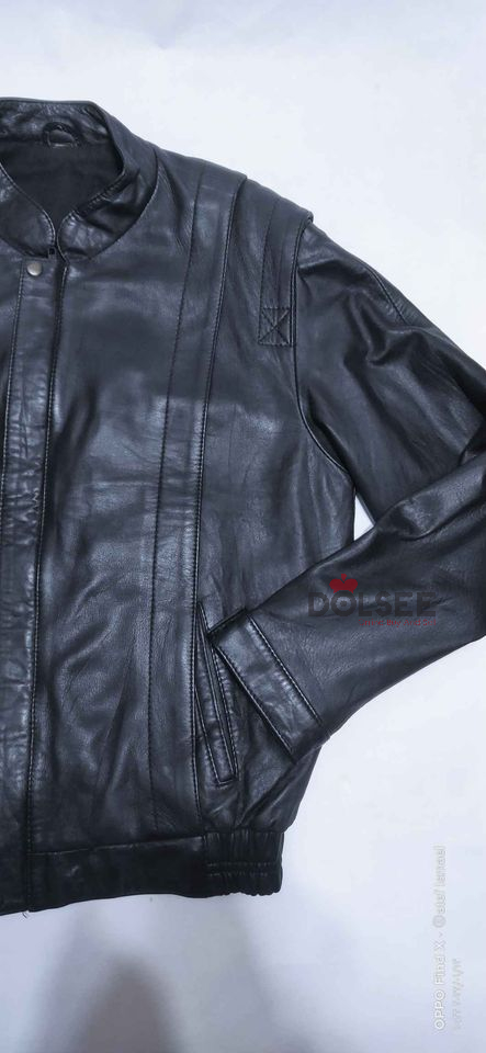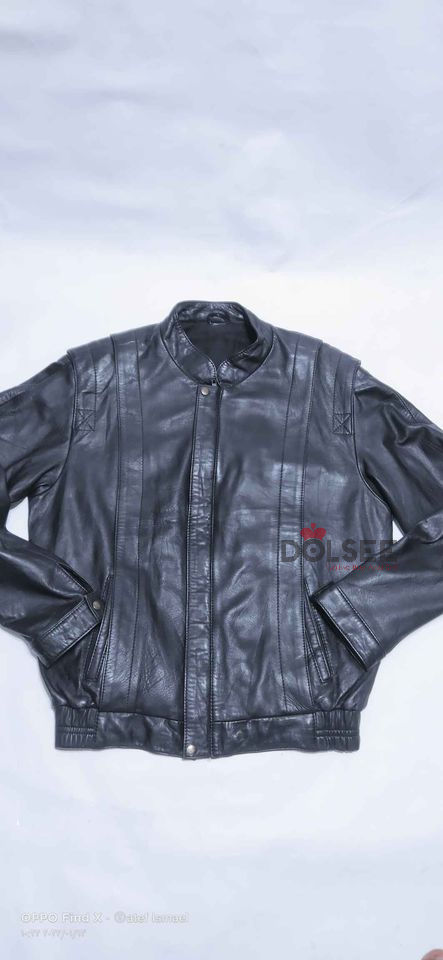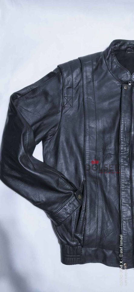 جاكيت جلد طبيعي فرنسا مقاس ميدياميشبه الجديد بحاله جيدهعرض الصدر ٥٧سم اسود