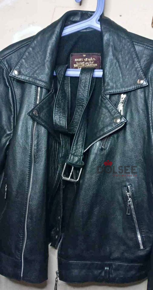 جاكت جلد طبيعي ينفع رجالي و حريمي استعمال بسيط جدا جداسبب البيع المقاس كبيرطول الكتف 45طول الدراع 56طول الجاكت 57