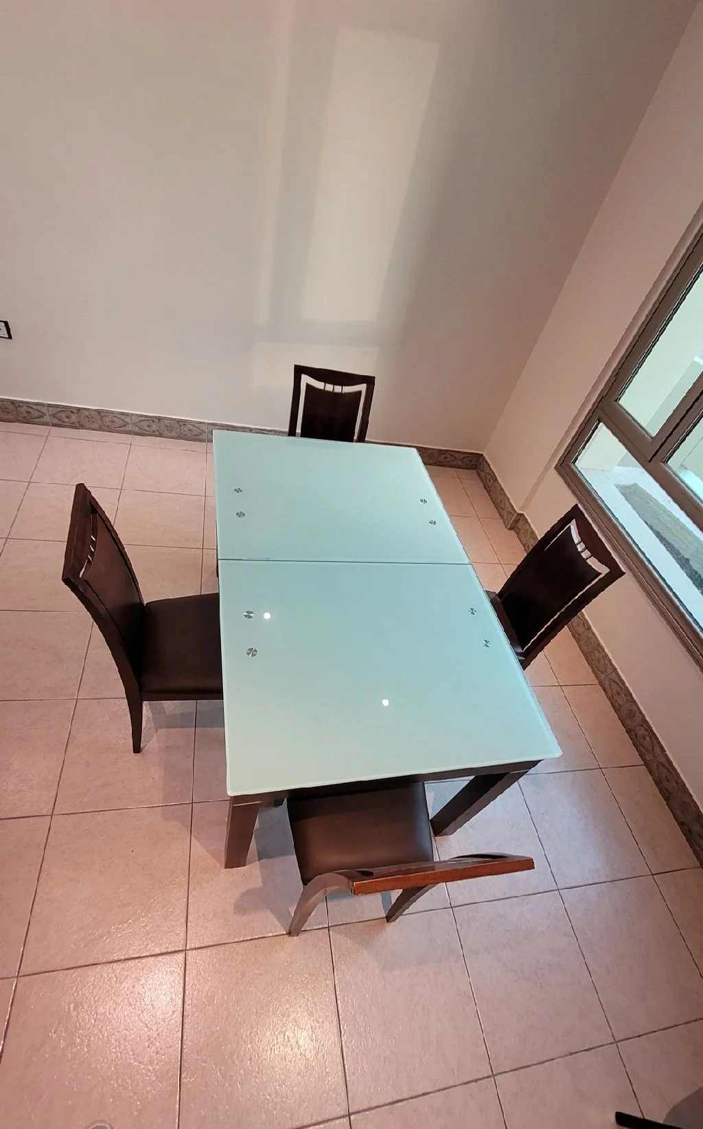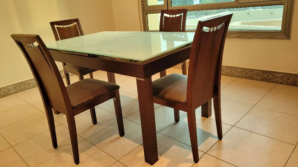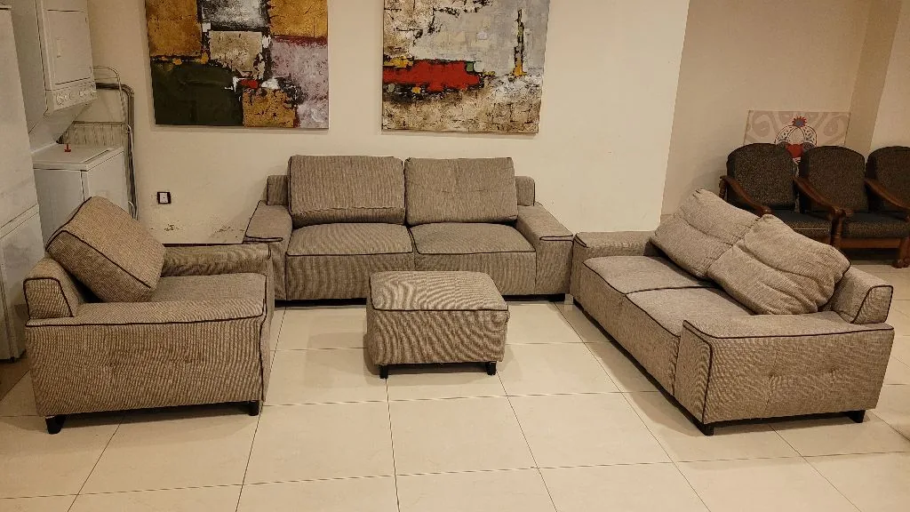 للبيع انتريه بحالة جيدة عدد 3 قطع ب 40دك وطاولة سفره بقرصة زجاجية وعدد 4 كرسي ب 40دك / موبايل + واتساب:
