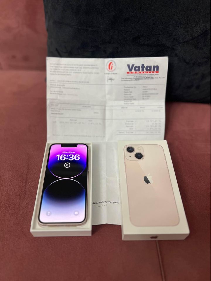 iPhone 13 mini. Pink color and the model is 256GB. Box, invoice and 10 months warranty are available. Has 360 coating on top, a little nudge on the bottom left side of the case, other than that it is flawless and very clean. (The reason for a small evil eye on the bottom left is because the gelatin has worn out, so there is no hair scratch elsewhere) Battery health: 88
