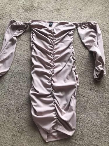 It looks weird in pictures because it’s a bodycon dress. it’s super cute i just feel like it didn’t really suit my body type. Size Small.