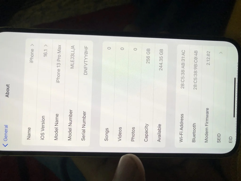 Phone, 13 pro max 256 GB memory 100% battery health 10*10 condition No water pack Everything is working perfectly LLA model with Neat and clean, Available now in very good price contact me on WhatsApp or call for more details / Mobile: 0523207366 - Email: sulmankamboh6@gmail.com