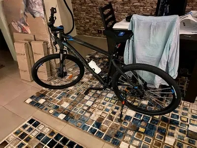 دراجة هوائية صخرية من ديكاتلون ماركة Rock Rider لم تستعمل تقريبا جميع الكماليات الحديثة بالقفل الخاص وغطاء الكرسي والزمزمية ضمان مدي الحياة لدي محلات ديكاتلون العالمية المستورد. للهواة والمحترفين