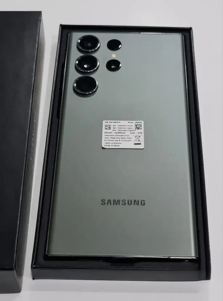 Samsung S23 Ultra, Indian Purchased Only Seal Opened. 12/256GB Storage. Purchased 10 Days Ago Unused Device with Bill, Box & All Accessories. Phantom Green Colour. 1 Year Warranty Remaining. Sim also isn't inserted yet. Totally brand new device