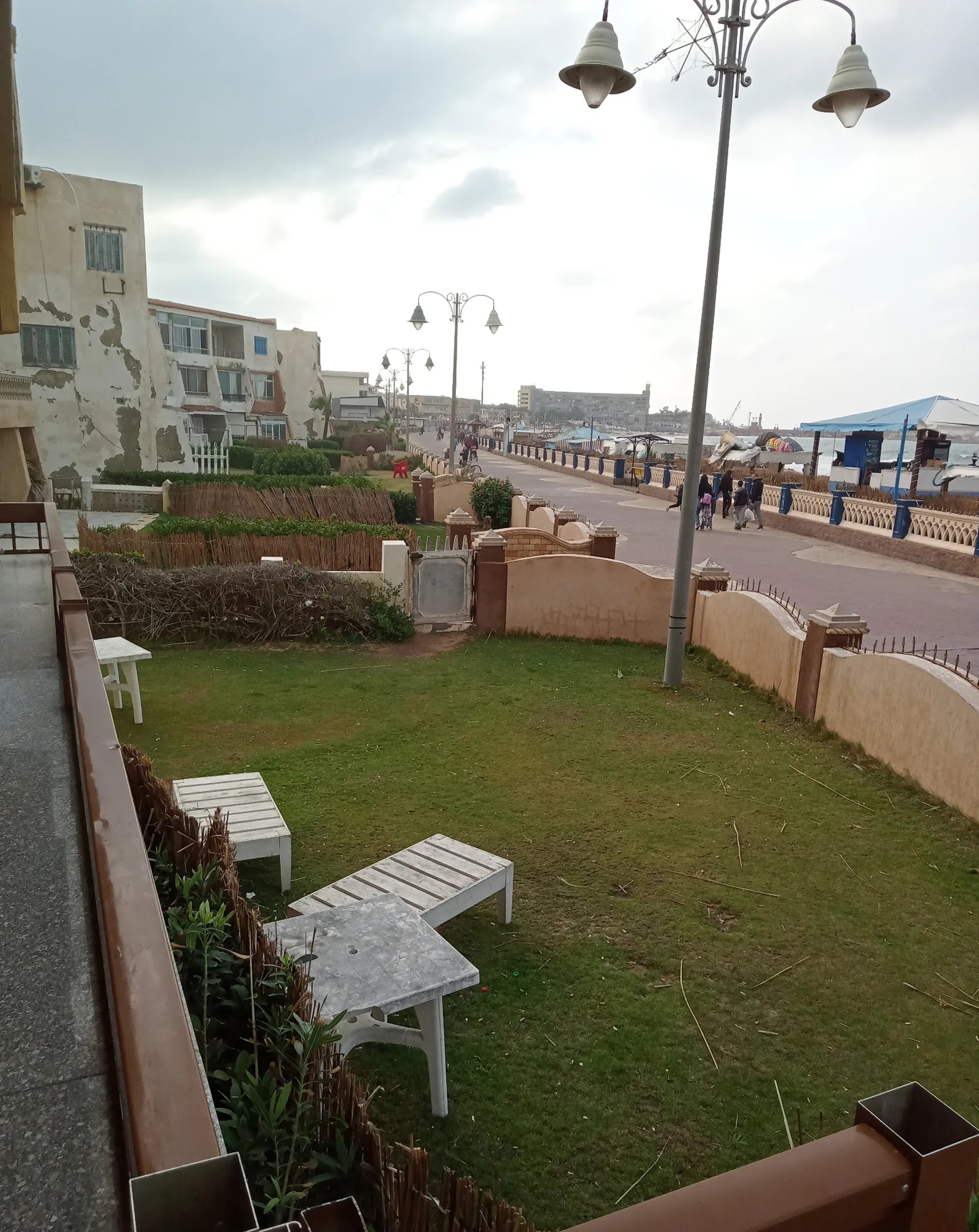 شالية(3غرف)للايجار دور ارضي اول نمره من البحر في المعمورة الشاطئ