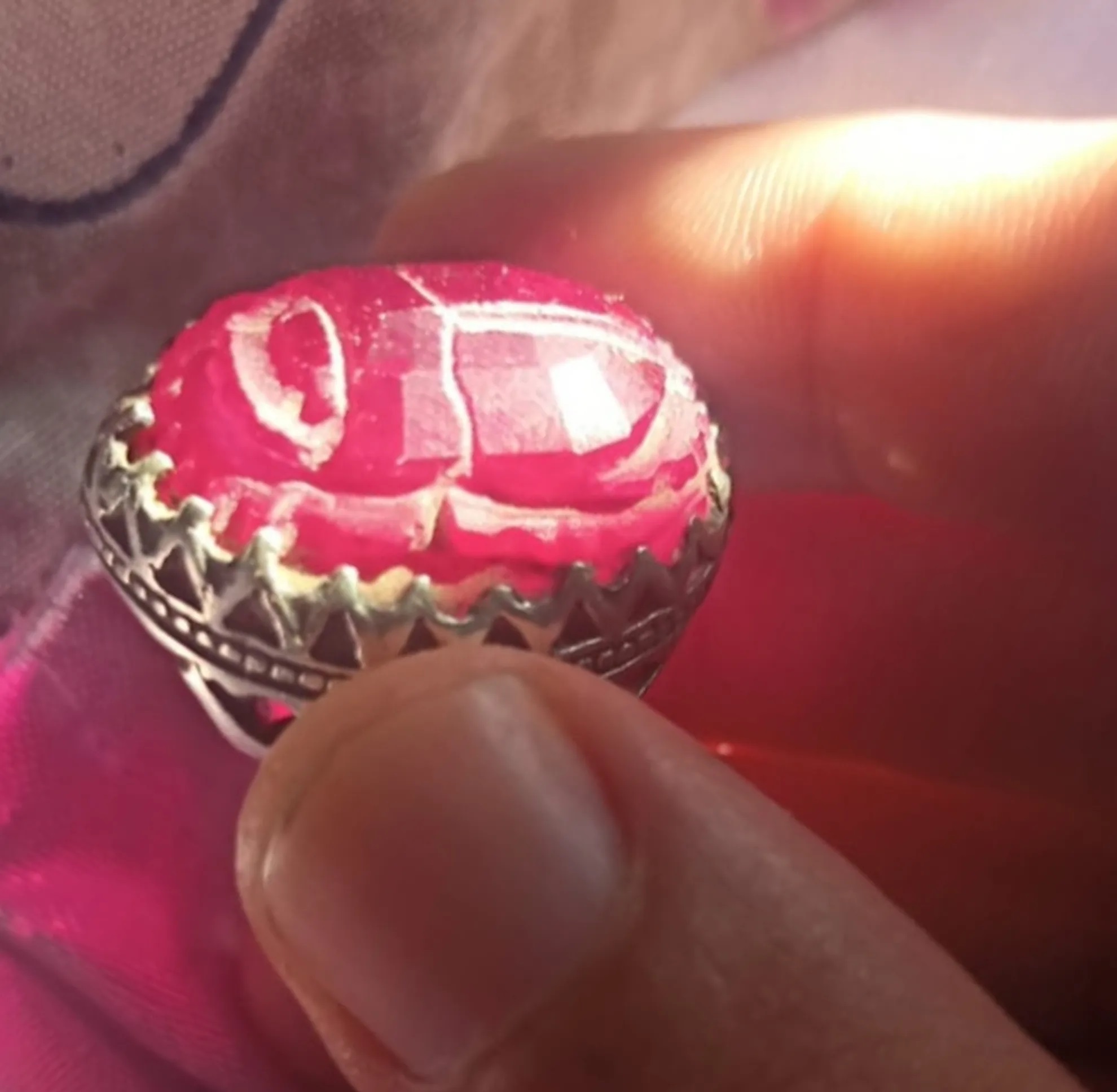خاتم ياقوت كبير فضه علي شكل جعران للبيع