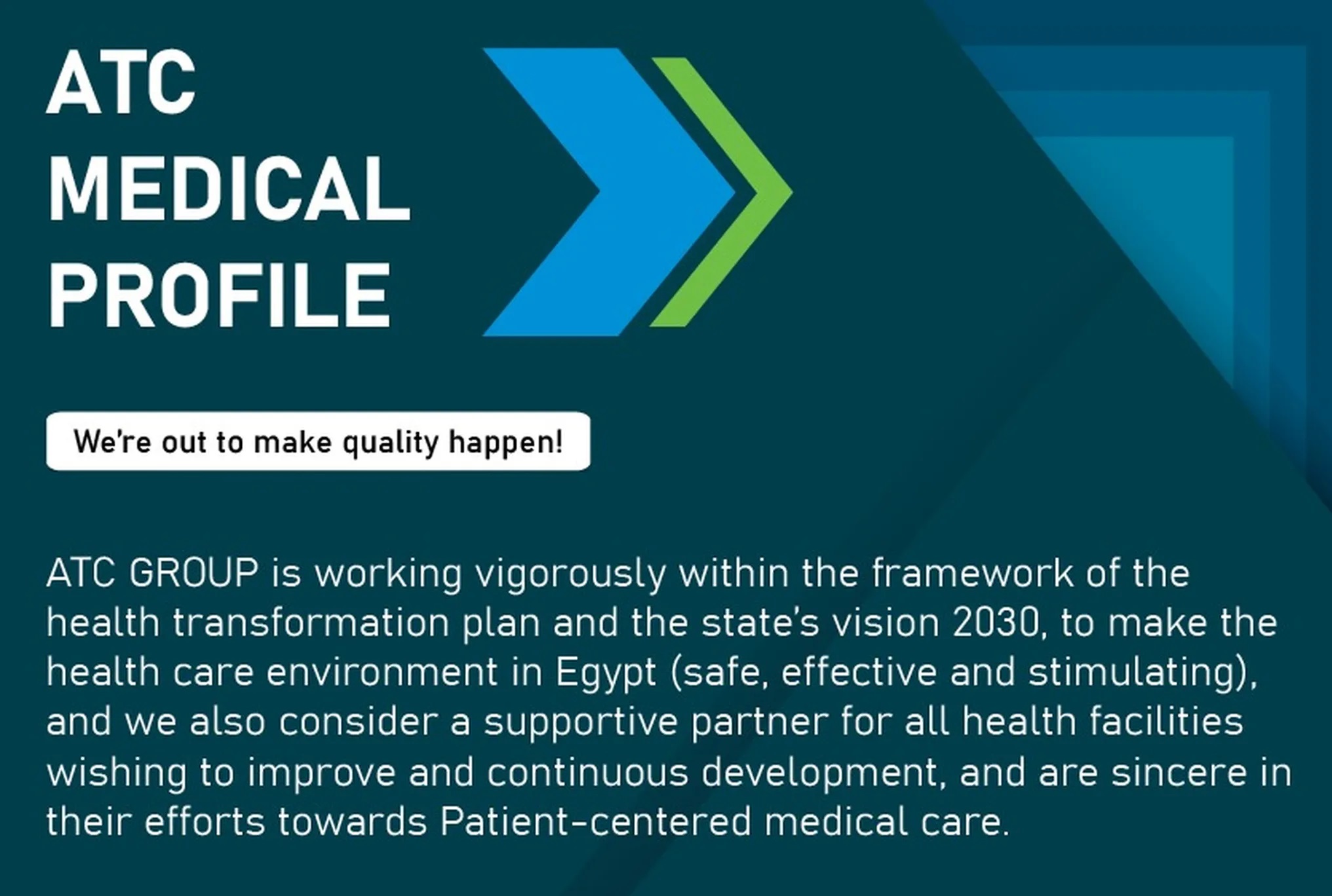 ATC GROUP is working vigorously within the framework of the health transformation plan and the state’s vision 2030, to make the health care environment in Egypt (safe, effective and stimulating), and we also consider a supportive partn