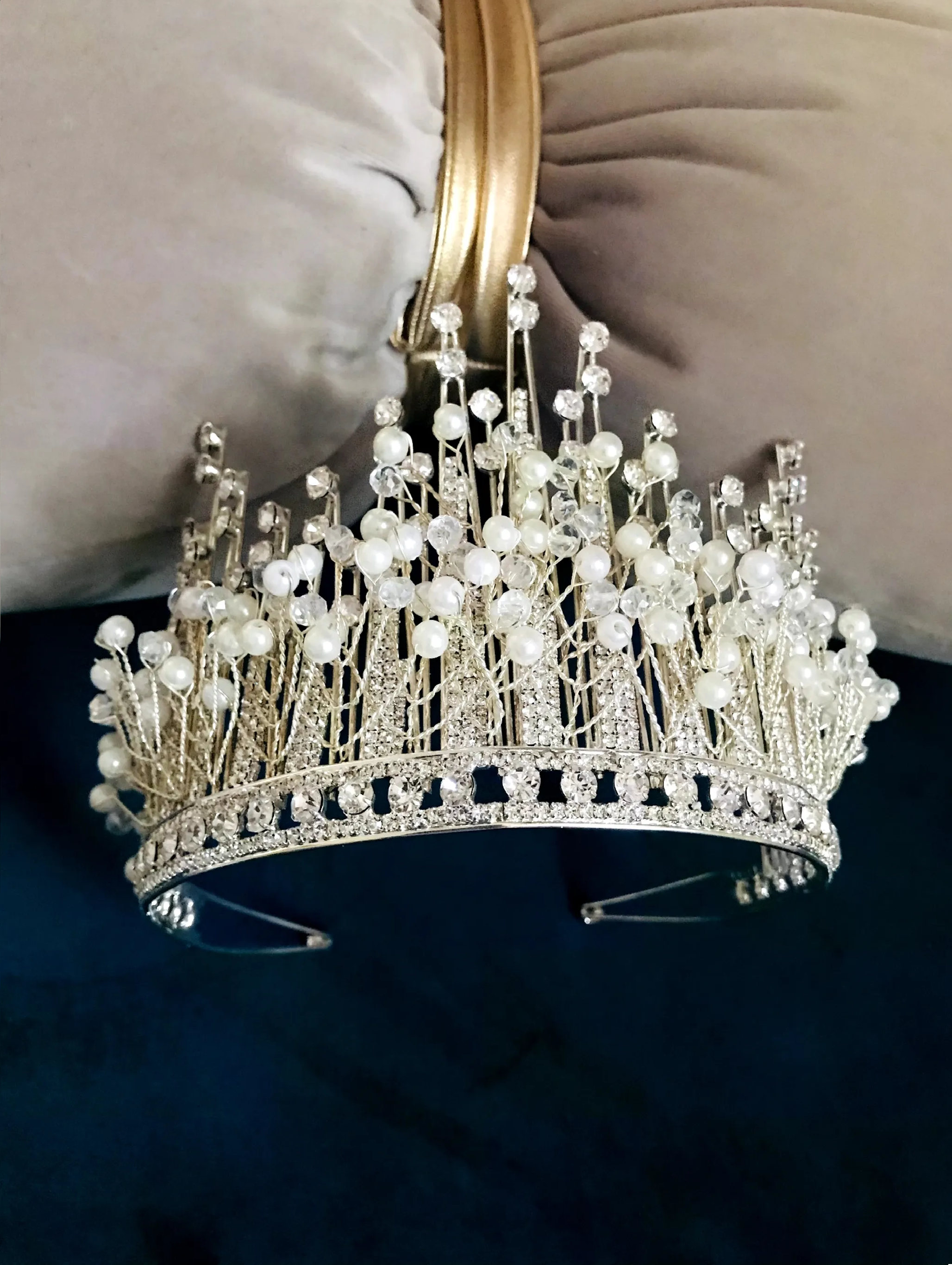 تاج عروسه ملكي مرصع باللولي و الكريستال جديد لم يستعمل
