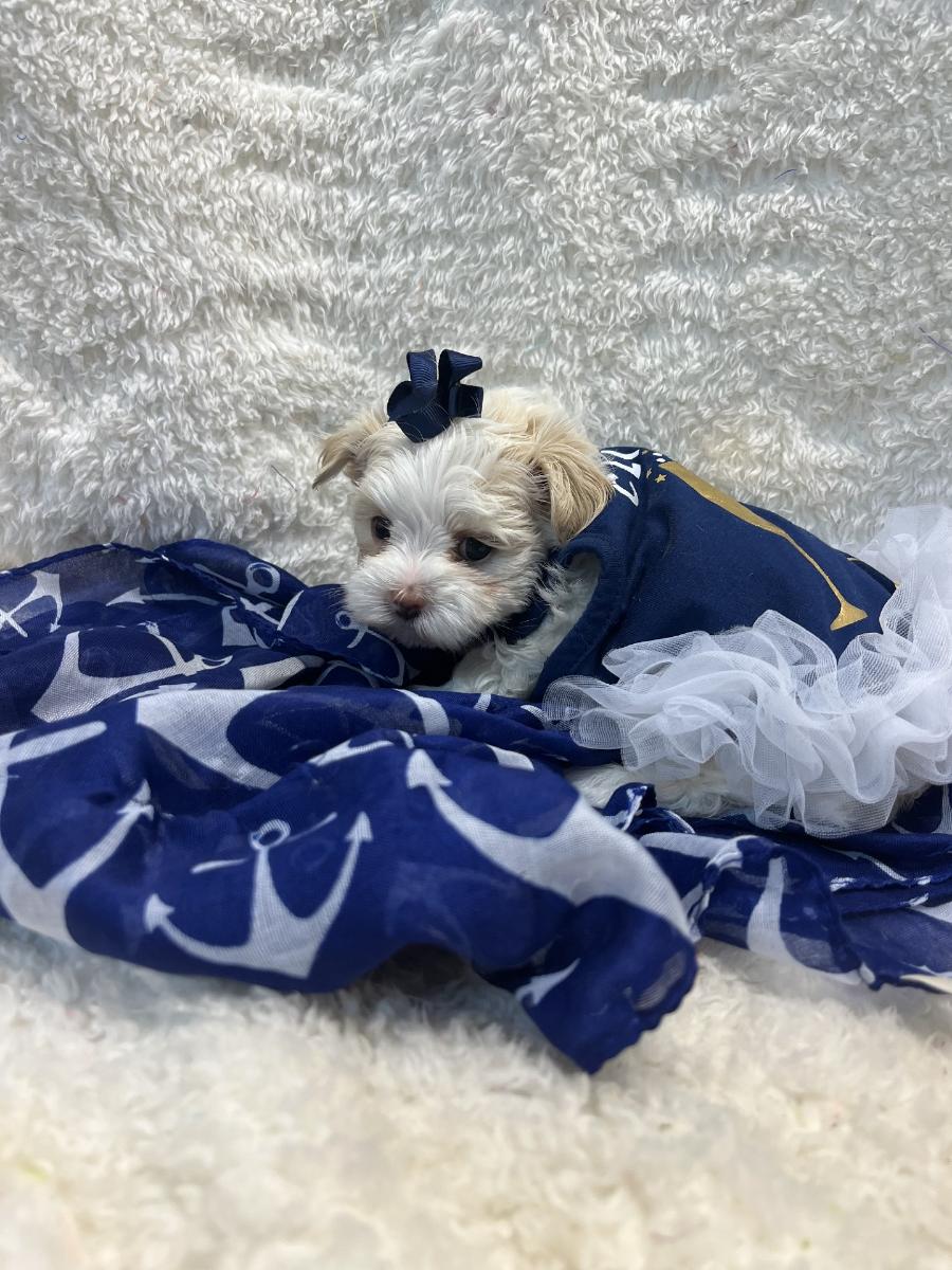 Morkie female Charlotte. Cottonball white, with cream points that will probably turn white. Uptodate shots, reg, microchipped, food toy and blanket included :) Health check is done before she goes to her new home, Charlotte is ready 6/29 I have included a grown up morkie, these designer breed puppies, morkies, wonderful , outgoing, loving , funny lap puppies.