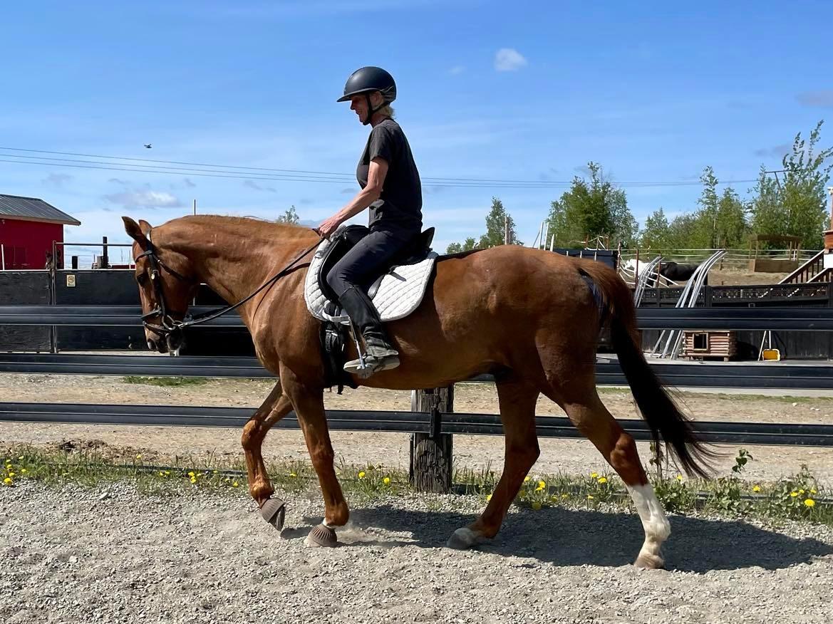 Beobou “Bob” – is a 2001 thoroughbred, who didn’t make it on the track and then was trained by a cowboy, and then trained in dressage and jumping prior to the AKHR. He has been with us since 2014, and used in our intermediate/advanced lesson program. He can go both western and English. He has been shown in First Level Dressage, and has the potential to go higher. He is not a beginner horse, he is a TB with more go than woah, intermediate to advanced only. Proudly offered for sale at $2,500 USD.
