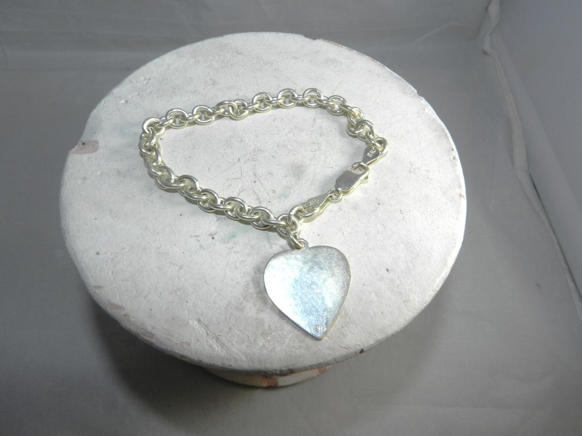 Just in time for Valentine's Day, this lovely vintage link bracelet with a dangling heart charm is tamped Italy 925. It weighs 15.5 grams and has a safety clasp. Engrave the heart or leave it blank.