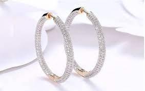 925 Silver 34mm 18K Gold Circle Hoop Earrings For Women Fashion Wedding Jewelry