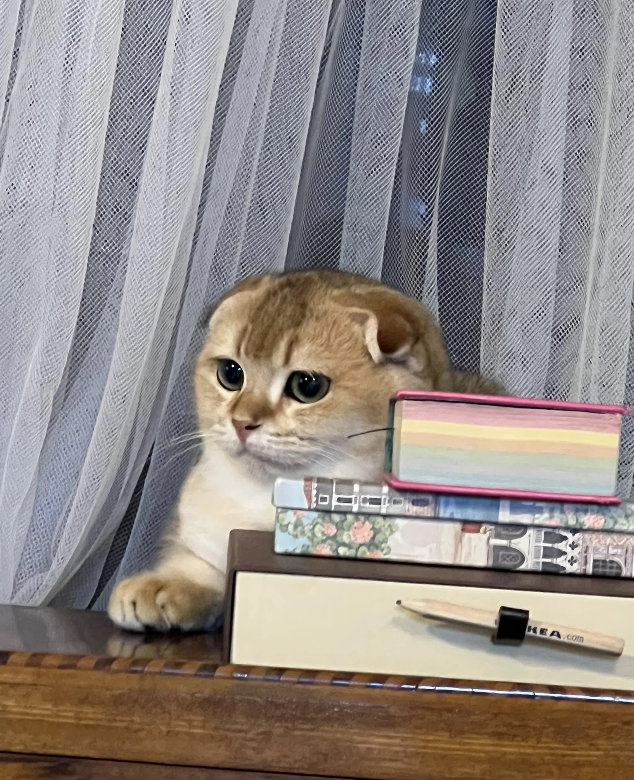 He is an absolute joy with the most beautiful biggest eyes. Father is a British long hair and mother is a Scottish Fold.