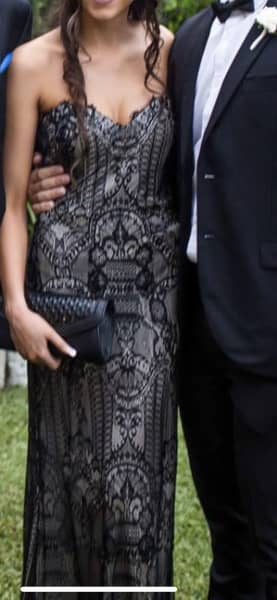 This Black Lace/Beaded Rose Noir Formal dress is absolutely stunning. The photos don't do it justice. It is fully lined and was worn once to a high school formal. It has been dry cleaned. I paid $699 for it brand new.