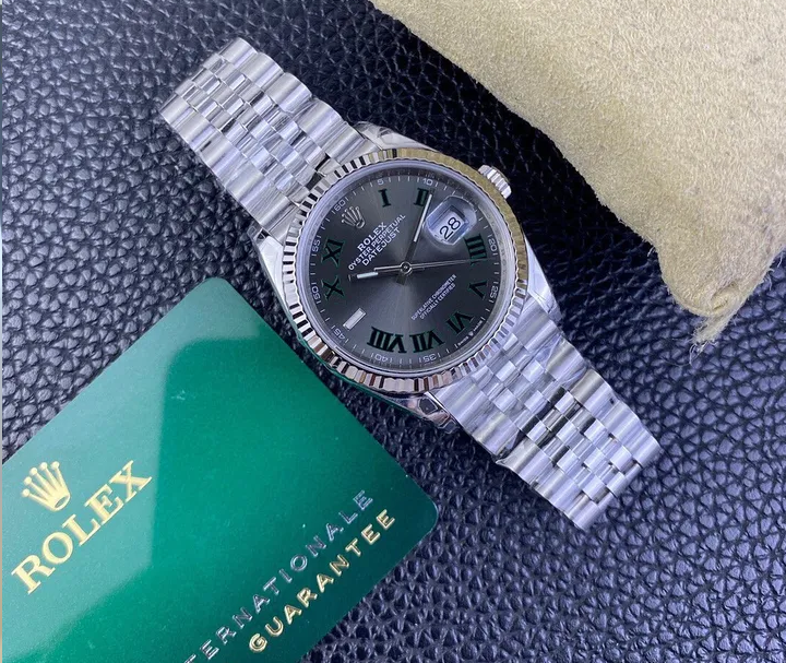 41 mm case diameter, 904L solid steel, jubilee, fluted bezel.