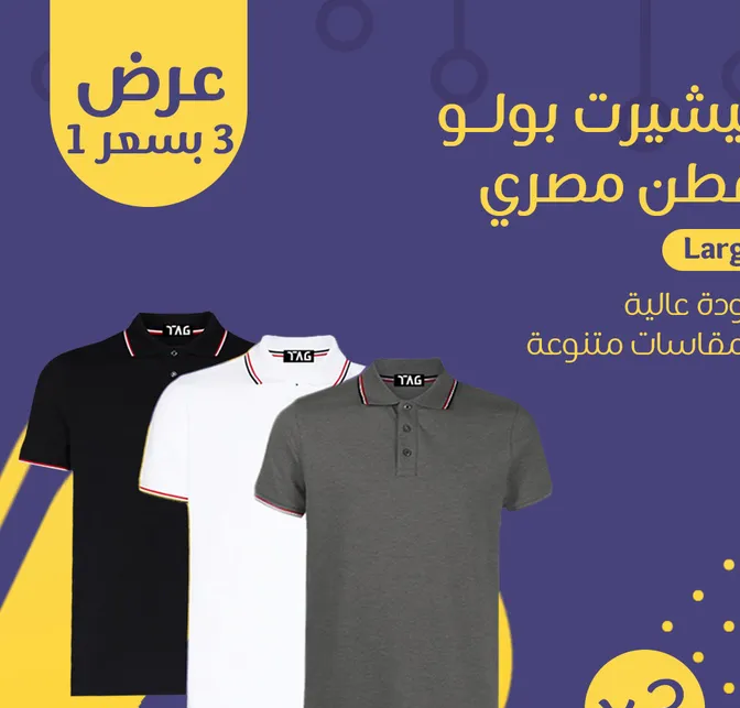 • يمكنك الحصول على 3 تيشيرتات بولو بسعر تيشيرت واحد.