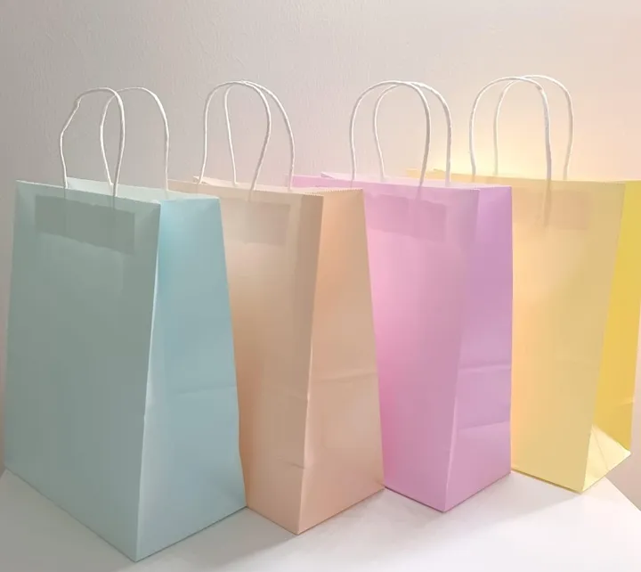 كيس ورقي متوسط الأبعاد 27 سم × 22 سم × 11 سم، 12 في العبوة الواحدة. الجودة جيدة جدًا والألوان جميلة.