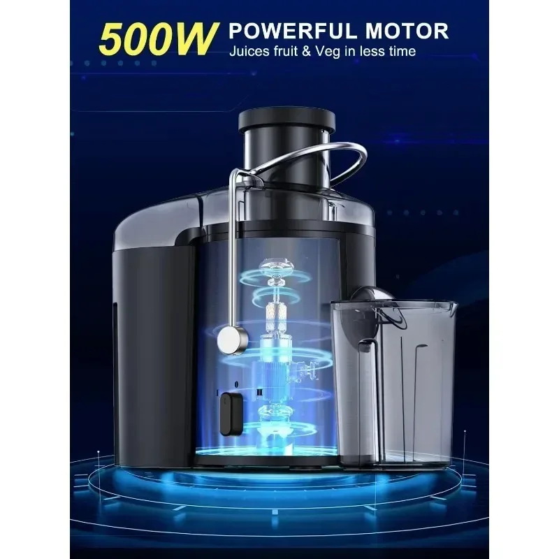 Juicer Machine, 500W Juicer with 3” Wide Mouth for Whole Fruits and Veg, Centrifugal Juice Extractor with 3-Speed Setting
