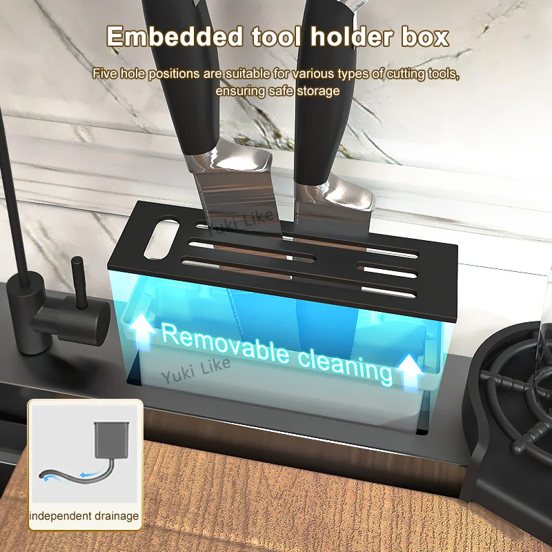 Stainless Steel Kitchen Waterfall Sink Digital Display Large Single Sink Dish Basin Sink With Multifunction Touch Waterfall
