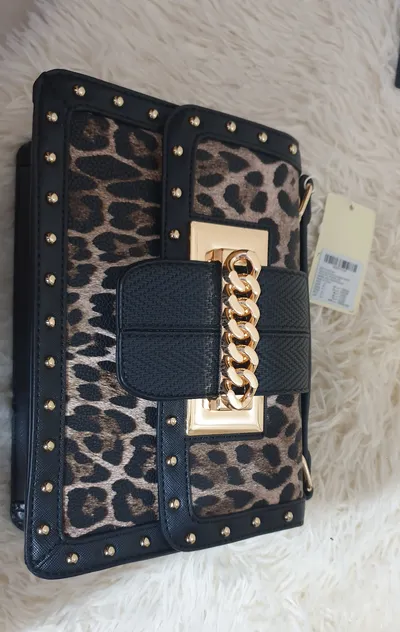 شنطة من ساشة اسود فيها نقش بني جديدة