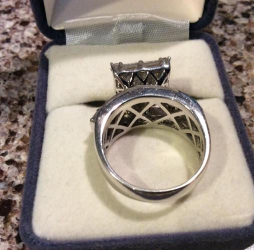 14KT white gold diamond ring with 2.25 cts of princess, baguette and round diamonds. Ring has an under gallery in a heavy mounting. Size 6
