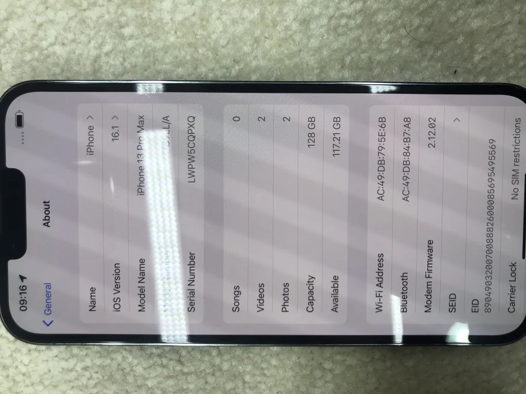 IPhone, 13 promax 128 GB memory 89% battery health 10*10 condition Everything is working perfectly LLA model with FaceTime Neat and clean, original waterproof Available now in very good price contact me on WhatsApp or call for more details / Mobile: 052 320 7366 - Email: sulmankamboh6@gmail.com