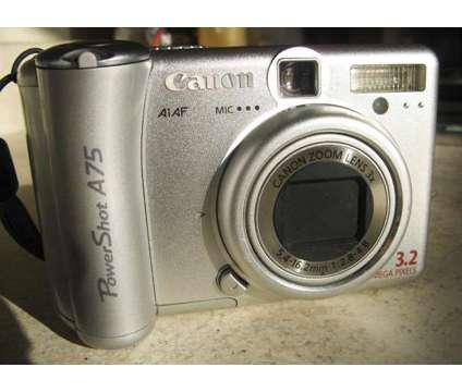 anon Power Shot A75, 3.2 MP Digital compact camera, telephoto electronic lens, contains many outstanding features, including a FC-32MH memory card, and instructions. Cosmetic condition 10 / 10, Working condition 10 /10. Can Demonstrate, with instructions and case. Needs 4 x AAA batteries of your choice.*Tested* Flash, Film advance / rewind, Electronic optical lens movement all work flawlessly....