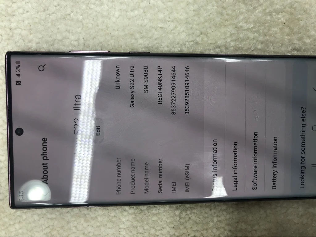 Samsung S22 ultra 128 gb memory 12 gb Ram 100 percent battery health 10/ 10 condition Neat and clean original waterproof Vietnam variant Available now in very good price contact me on WhatsApp or call for more details / Mobile: 0523207366 - Email: sulmankamboh6@gmail.com