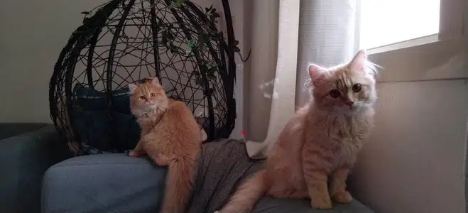 قطتين للتبني العمر ٥ شهور ذكر وأنثى او اي منهما بكامل المعلقات الخاصة بهما مجانا