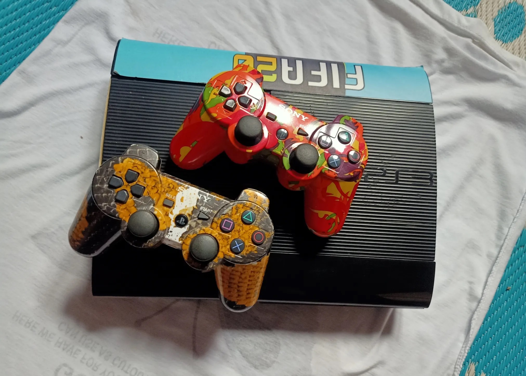 بلايستيشن 3 سوبر سليم هارد 320 حاولي 20 لعبه متنوعه كوره ومصارعه وحروب وحاجات تانيه دراعين وكل الوصلات الجهاز ع التشغيل