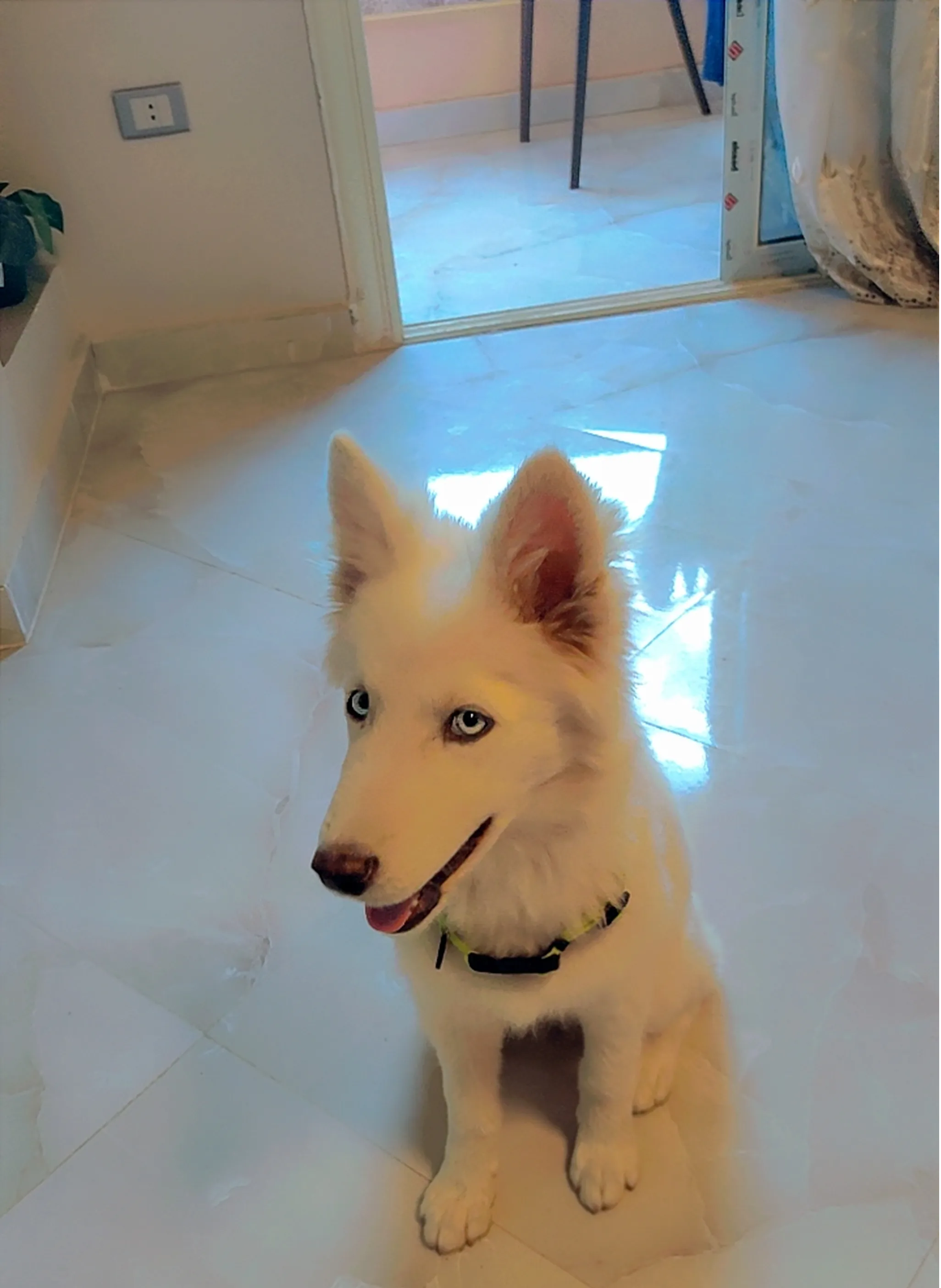 كلبه هاسكي 4 شهور ونص متطعمه ومعاها دفتر بتاعها متعلمه حمام بتاعها فين ومعاها الباد اللي بتعمل فيها التويلت ومعاه كام لعبه والطوق بتاعها بتحبو