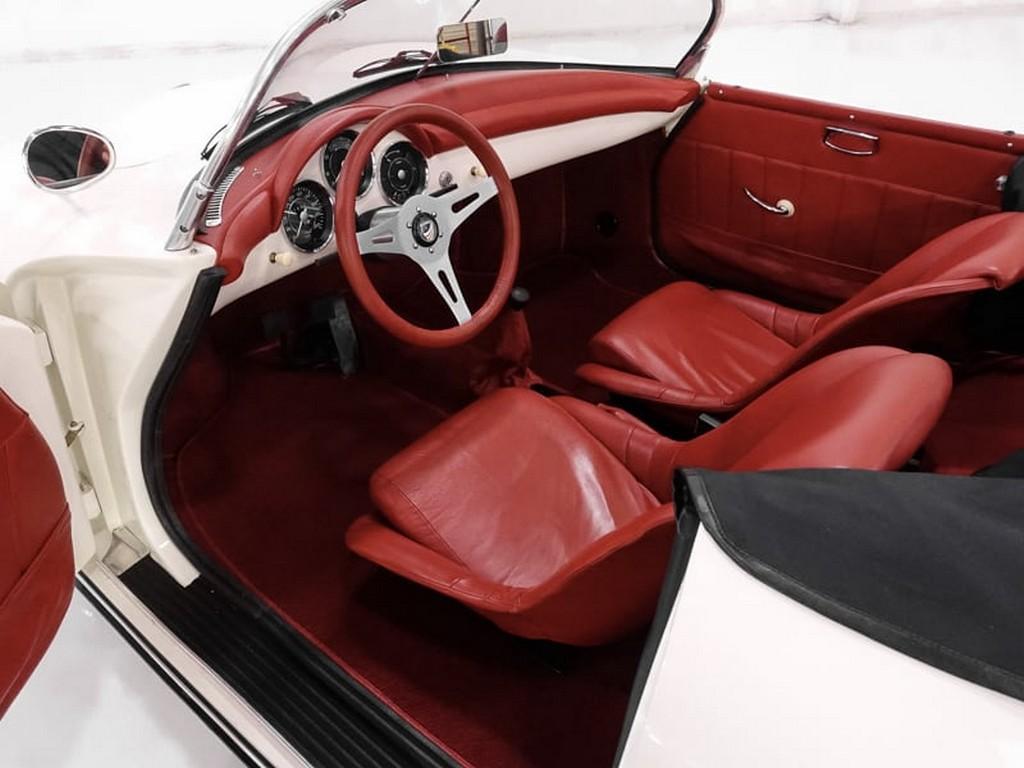 The 1957 356 Speedster replica by Beck featured here is finished in gorgeous Vintage White with a beautiful red leather interior. This magnificent Beck 356 Speedster Replica has been driven just 905 miles from new and was originally a Beck factory show car. It comes with many options including a 1,915cc engine with dual Weber carburetors, front disc brakes, full tonneau cover and more. We are pleased to offer this like new Porsche Speedster replica to the most demanding enthusiast who appreciates low miles and superior condition.
