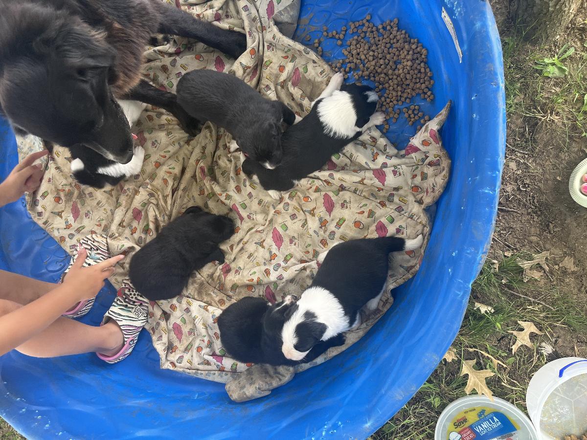 Dad is border collie mom is Australian shepherd/Great Pyrenees. They will be ready July 24th and will be wormed and vaccinated. They will be well socialized and raised around poultry and other farm animals.