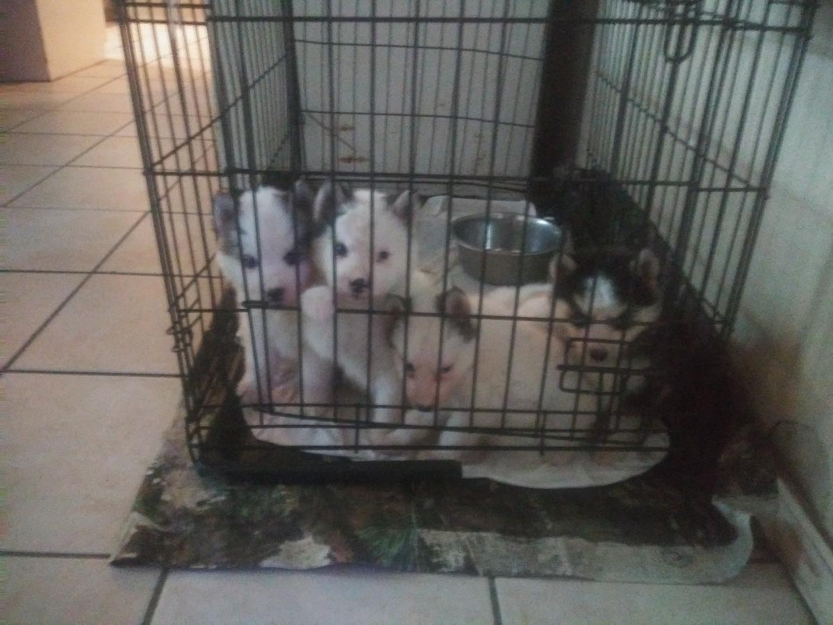7 wk old husky great Pyrenees mix 4 girls and one boy super energy and cute as a first pet or addition they can eat and drink on their own both parents live on site