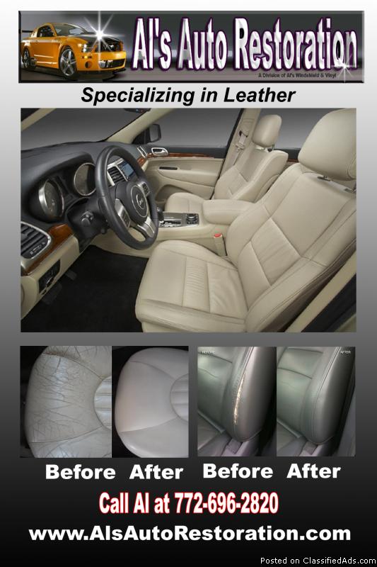 AL,SAUTORESTORATION.COM PROVIDES A MOBILE SERVICE FOR :  UPHOLSTERY REPAIR-LEATHER,VINY,FABRIC;  WINDSHIELD REPAIR-ROCK CHIPS OR MINOR CRACKS;    ODOR REMOVAL-OZONE ,EXTRACTION,STEAM;   HEADLIGHT RESTORATION;  PAINT CHIP AND SCRATCH REPAIR.