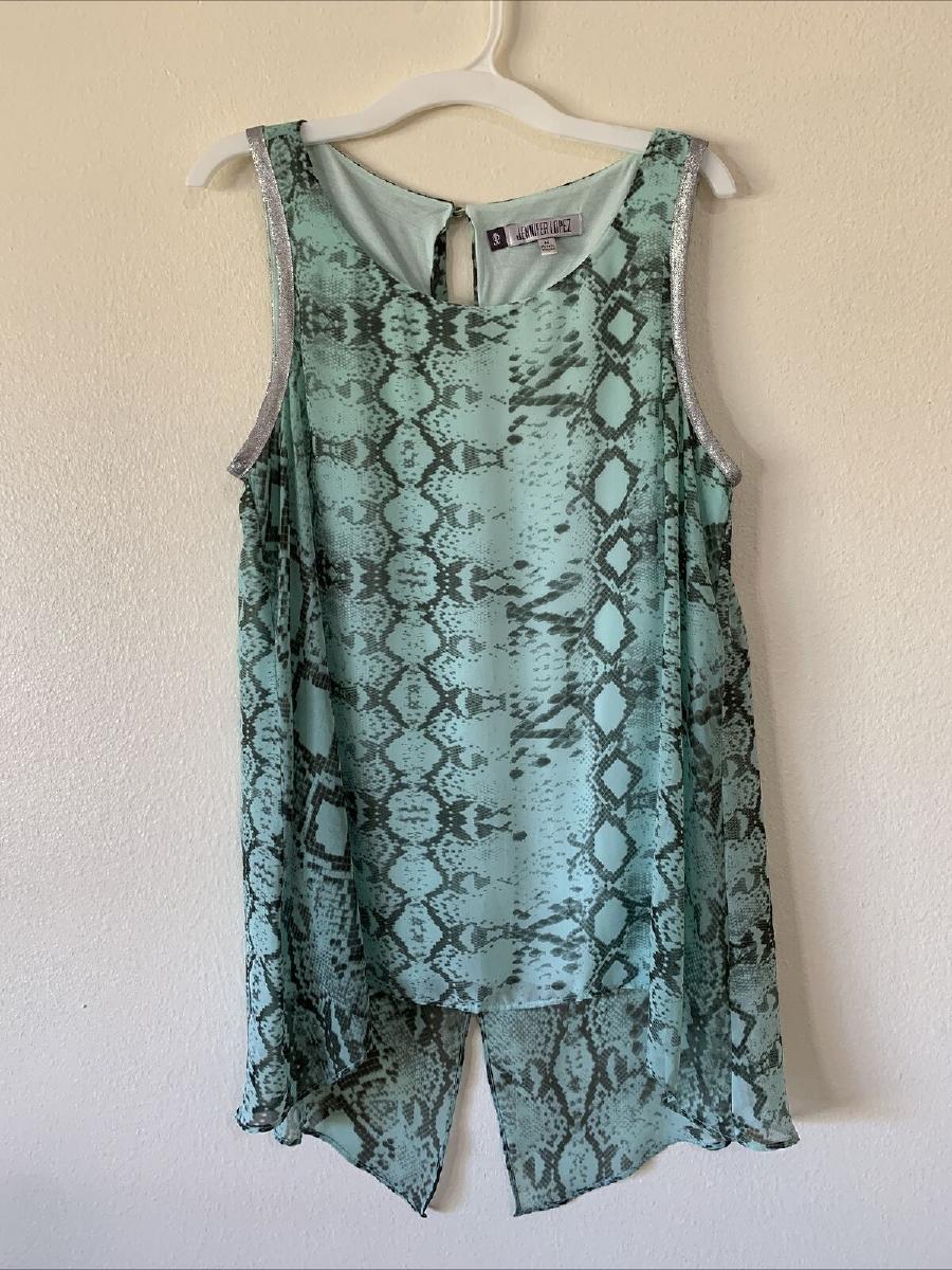Top Sleeveless Lined Jennifer Lopez Teal / Black Colors Silver Size Medium