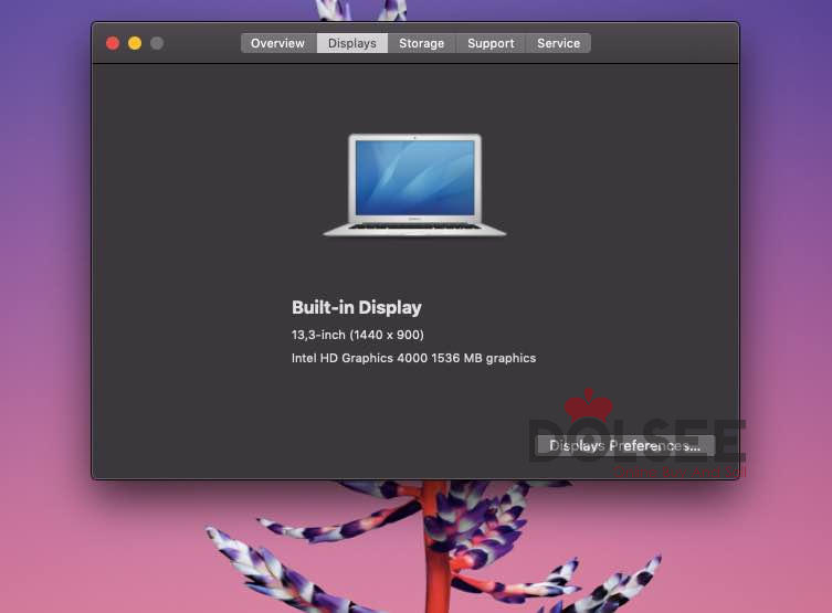 MACBOOK AIR 13 INCH MID 2012• Memory 4GB RAM 1600 MHz DDR3• Storage 128GB SSD• Resolution 1440x900• Intel HD Graphics 4000 1536MB• Processor 1.8GHz-2.8GHz Turbo Boost i5• Photoshop, Illustrator & Office (word, excell, powerpoint, etc.) ) the programs are loaded.