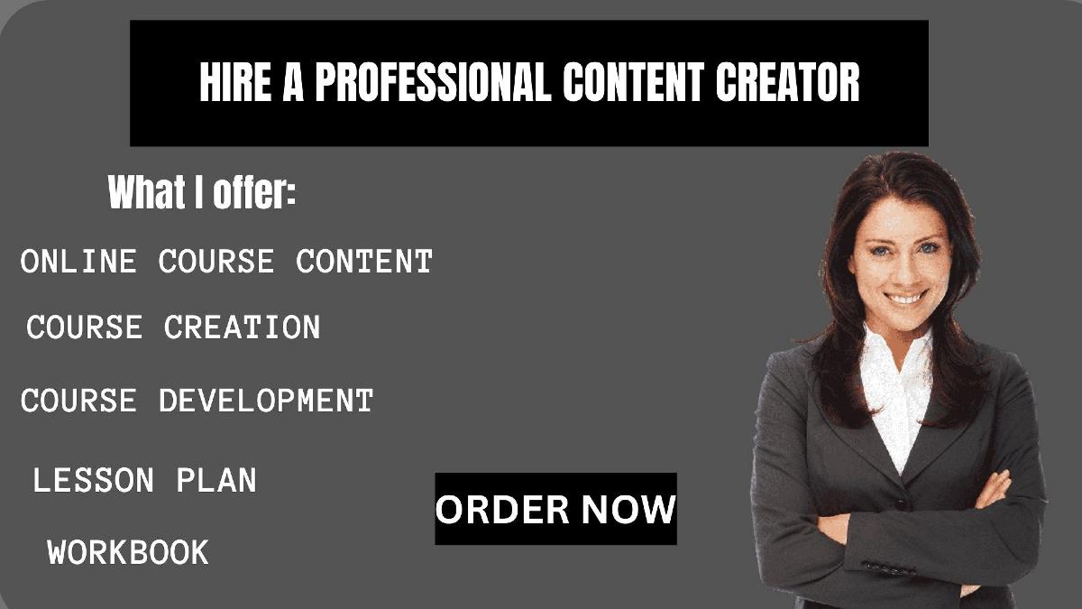 I WILL DO ONLINE COURSE CONTENT, COURSE DEVELOPMENT, LESSON PLAN , WORKBOOK FOR YOU PERFECTLY.