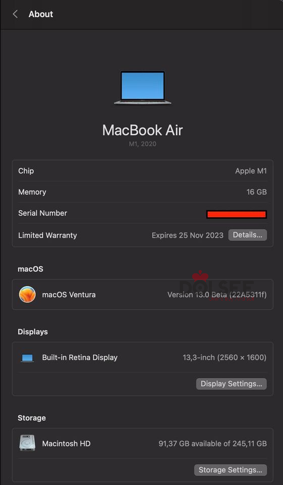 My Macbook is a 2020 model and all information is in the images. No scratches no problem* M1 Processor,*Upgraded to 16gb ram during purchase. Selling because I don\'t use it and it\'s been thrown away.Alen Guler