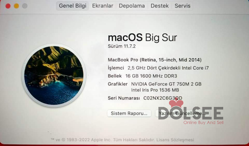 MACBOOK PRO 2014 - İ7 15" RETİNA