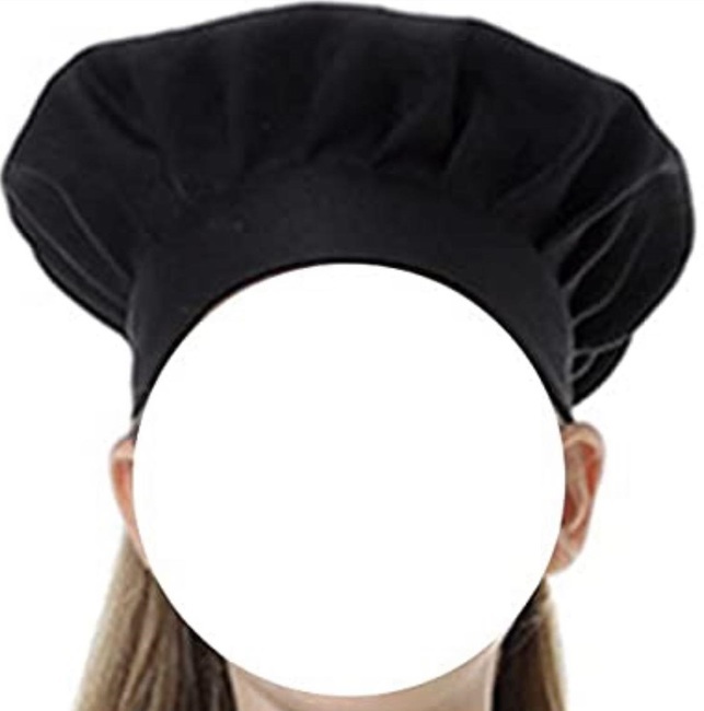 APRON HAS FRONT POCKET & HAT HAS ADJUSTABLE HEAD CIRCUFERENCE