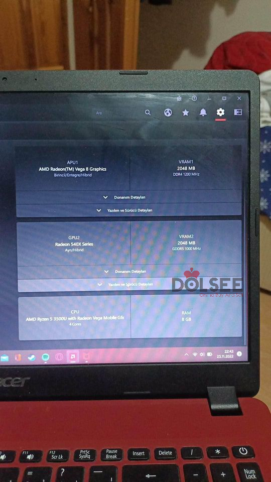 Acer aspire a 315-42 gAMD Ryzen 5 3500u with Vega Mobile gfx 2.10ghz8 gb ddr4 ram512 gb ssdMert Özgelen