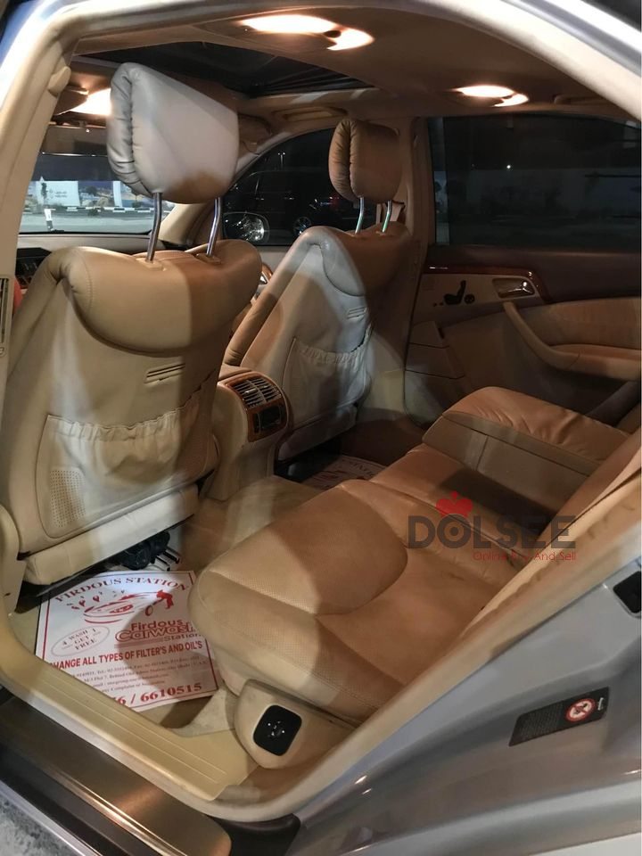 I am selling my family used Mercedes Benz S 500 2002 Full option (Gcc Spec ) # kilometer: 256723# V8# Sunroof # Air Suspension #Fridge# heated and colded Seats# Special Rims # Front and Back parking Sensors # Back Camera # Cruise control # Radar # Leather Seats # Second Owner # Spec : Gcc # Exterior color: Blue (Rasasi)# No mechanical or electrical issues #Well maintained #Automatic Climate control# Steering wheel Control # CD player# Cassette player # Am/Fm Radio # With all original books 📚